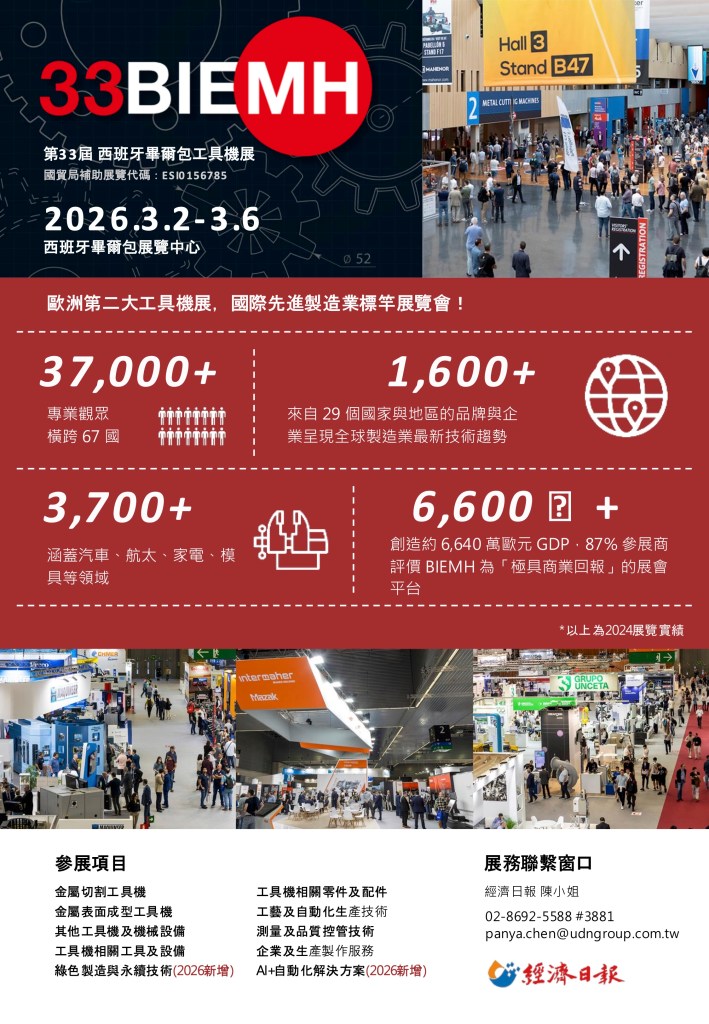 | 2026畢爾包工具機展BIEMH | 畢爾包展覽中心 Bilbao Exhibition Centre | 2026/3/2 -3/6 | ●攤位費用 │ NT$300,300元/20sqm(含稅) ●預備金額 │ NT$20,000元/攤 | Full Details → | |