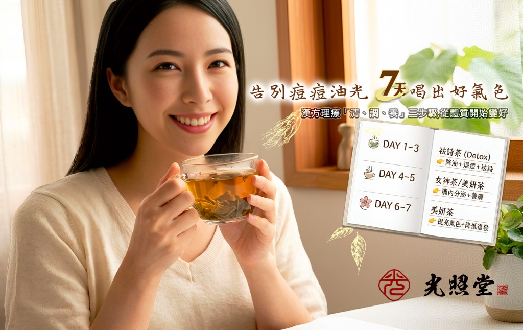 在快節奏與高壓生活型態下,許多人開始發現,肌膚狀態不只是外在保養的結果,更與日常飲食、作息與身體內在循環息息相關。針對現代人常見的出油、膚況不穩與氣色暗沉等困擾,「光照堂漢方天然草本」推出全新「7日調理組」,以草本茶飲為日常切入點,透過清爽順口的飲用體驗,帶來由內而外的輕盈調整。